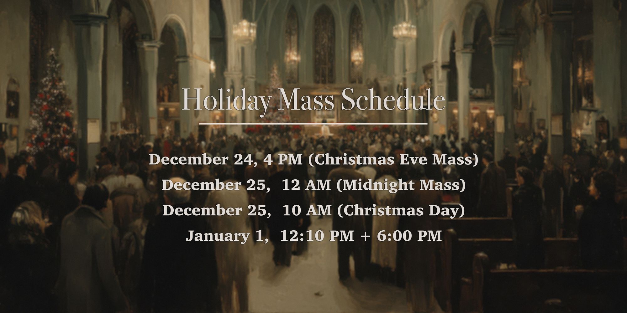 Monday – Friday 11:00 am – 12:00 pm (Confessions until 11:45)