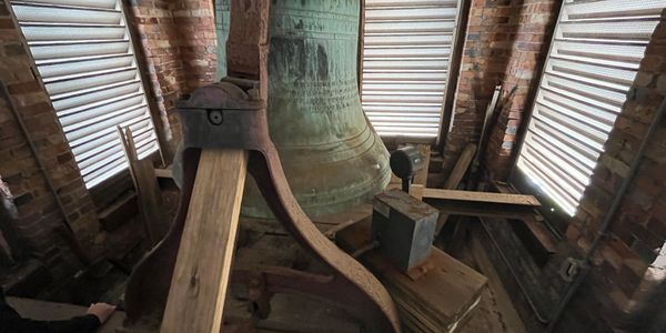 The recent engineering survey on our bell tower (see the 2023 CSA Page) revealed that the cradle or housing, and undergirding support of our lone bell, "Michael," is in need of repair and restoration. As you can see from the photo to the left, much of the metal structure is supported by wood and has corroded significantly. The bell does not swing and is sounded by the use of a striker.